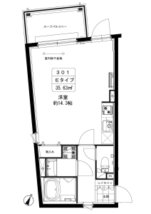 掃除が楽な1Rタイプで、嬉しいルーフバルコニー付の物件です!